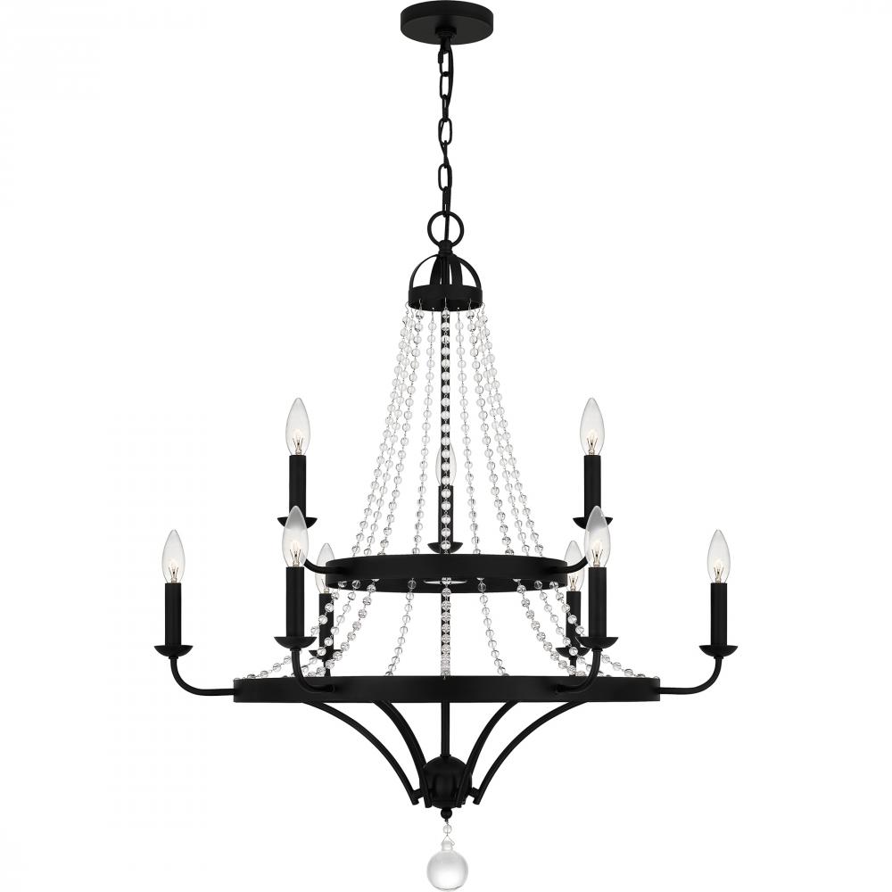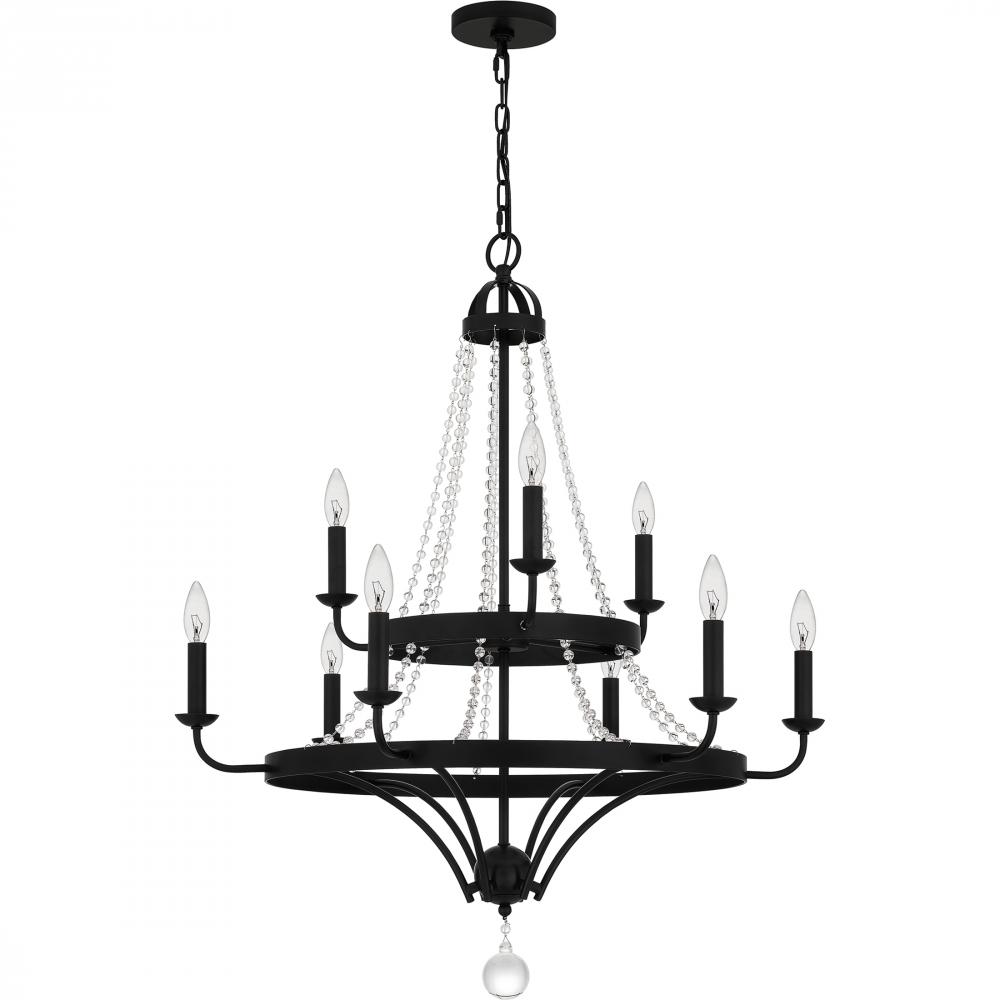 Matte black and crystal make a beautiful, unexpected pairing. The Adelaide series, available as a semi-flush mount, pendant, or chandelier, is a study in contrast with a hint of French country style. Whether above a dining table or perched in a powder room