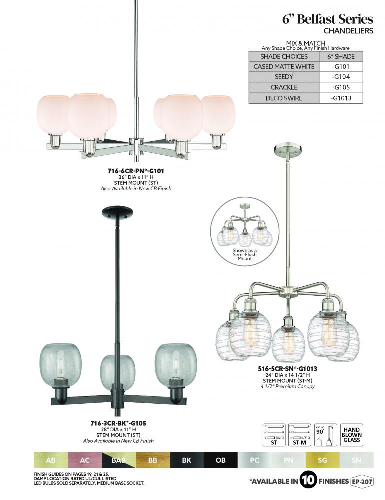 Belfast - 6 Light - 36 inch - Polished Nickel - Stem hung - Chandelier