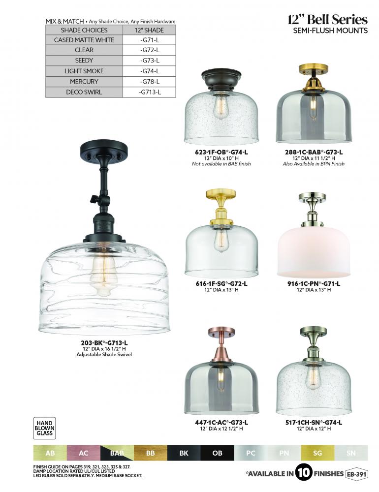 Bell - 1 Light - 12 inch - Antique Brass - Semi-Flush Mount