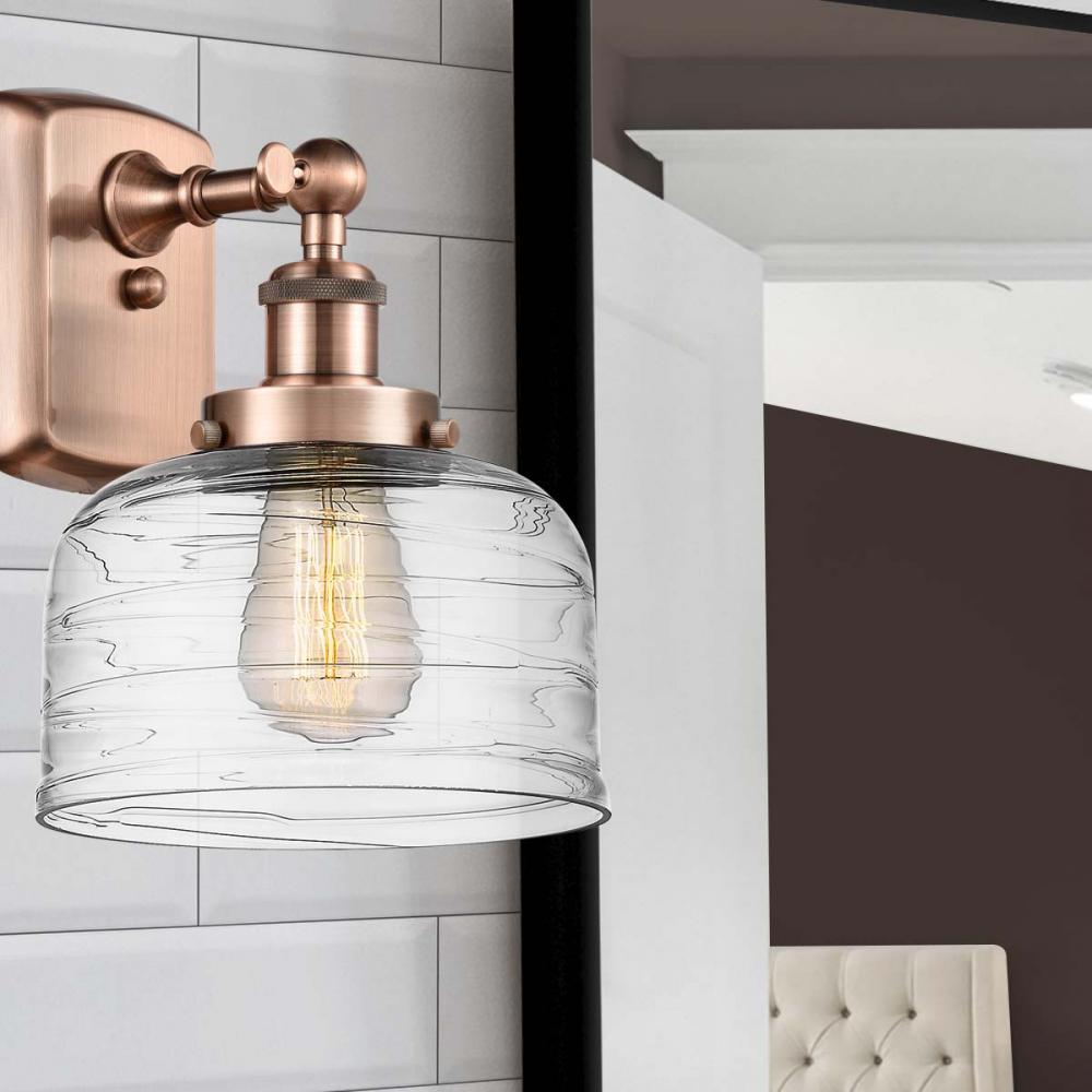 Bell - 1 Light - 8 inch - Antique Copper - Clear Deco Swirl Shade - Sconce