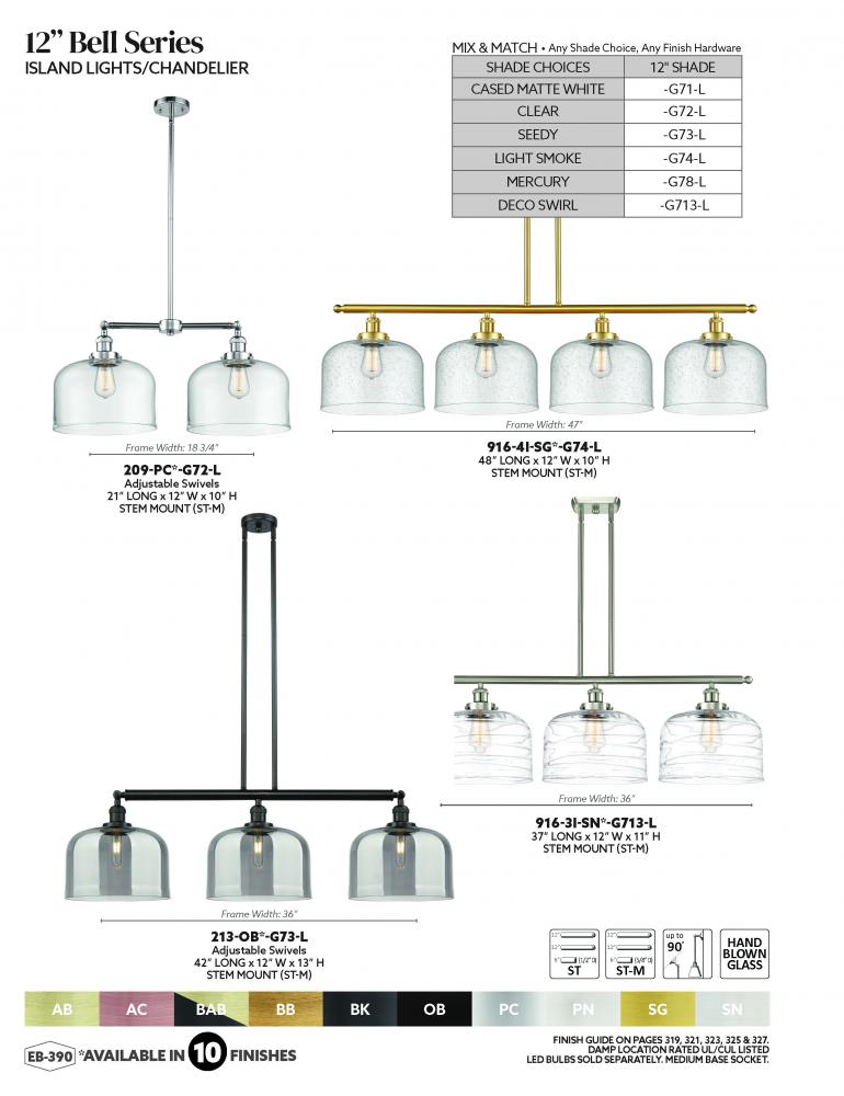 The Franklin Restoration collection is comprised of heavy cast components that give the fixture a heavy Industrial look and feel. We offer the fixture in 10 finishes with a Bare Bulb look or with over 100 possible metal and glass shade options that can cha
