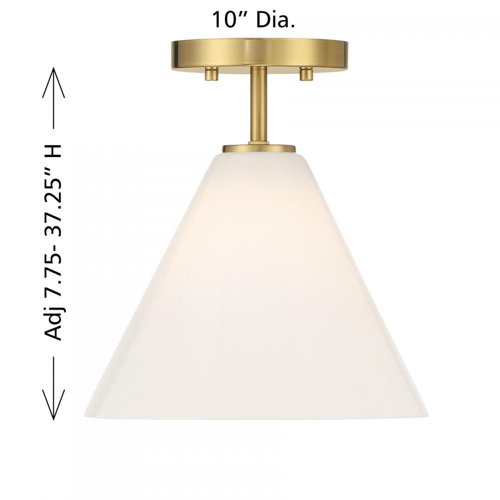 This Savoy House Blair 1-light mini pendant is oh so versatile! It can be installed as a hanging pendant or as a ceiling semi-flush mount, making it perfect for meeting every lighting need. It is finished in Warm Brass and holds a shade of spectacularly swirling strie glass. Blair is 10" in width and has an adjustable height ranging from 7.75" to 37.25". Uses one standard size bulb of up to 60 watts. Bulb not included. Comes with three 9.5" downrods.
