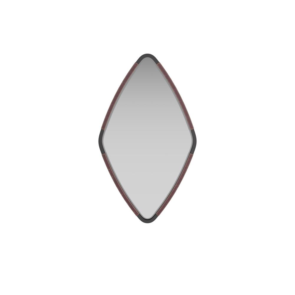 This jewelry-inspired style is accented in shades of deepest merlot and topstitched for visual interest. Wrapped in oxblood leather, it is accented with cuffs of bronze-finished brass at each corner. Designed to be hung both vertically and horizontally, it is secured with cleat hardware. Finish will vary.