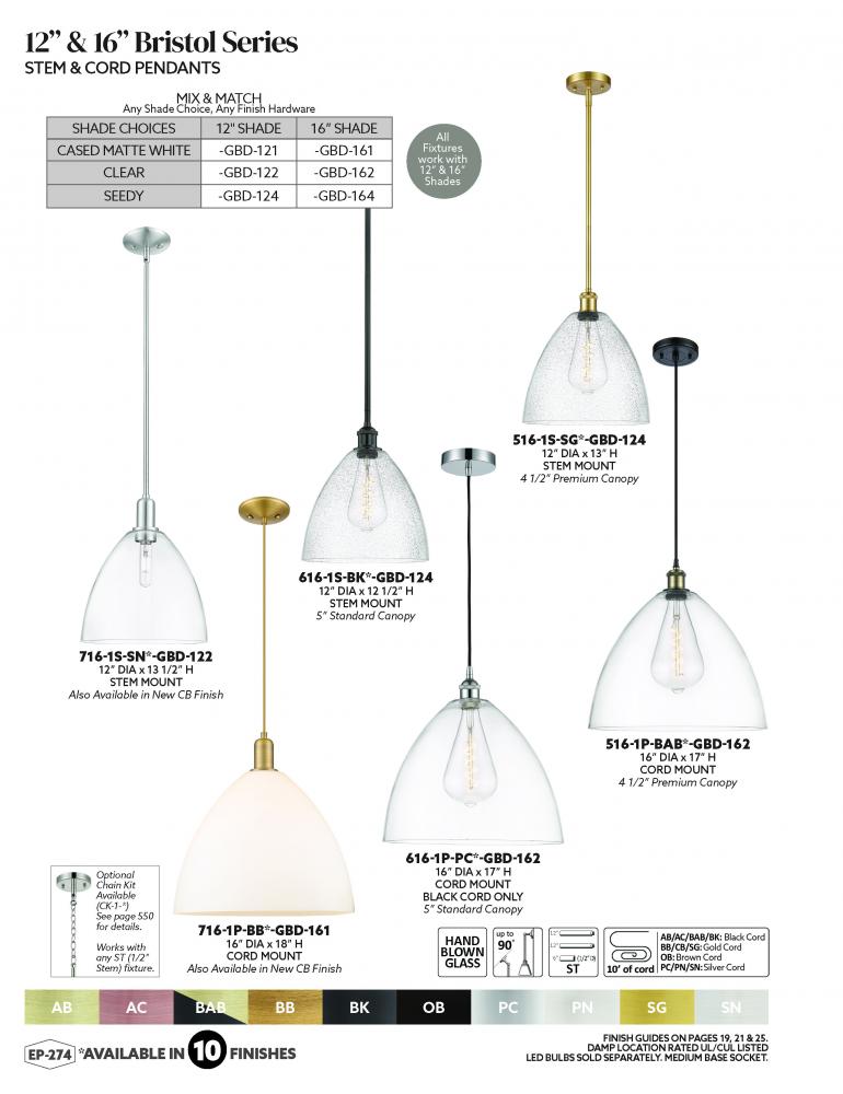 The Edison collection is comprised of heavy cast components that give the fixture a sturdy transitional look. We offer the fixture in 9 finishes with a Bare Bulb look or with over 100 possible metal and glass shade options that can change the style to fit