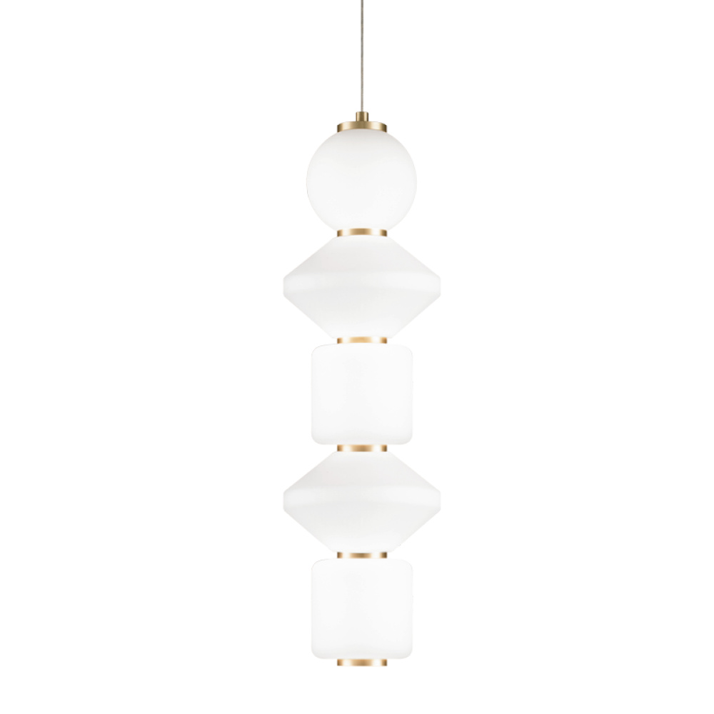 A unique series of pendants, Dango is comprised of opal glass in the form of geometric shapes complemented by Oxidized Rose or Oxidized Black detailing. 2 styles will be available - all the same glass or a mixed glass version. Additional glass can be purchased separately to create a unique personalized fixture. Available in 4 sizes