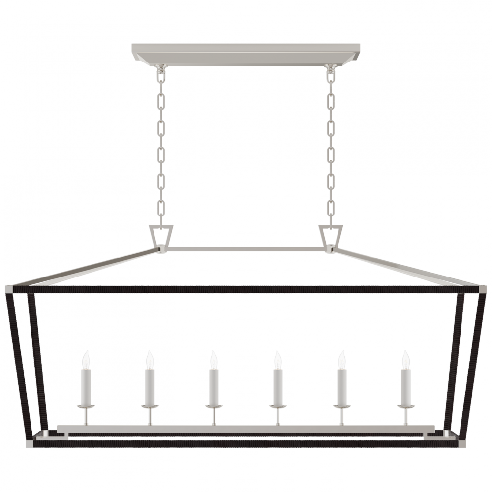 Darlana Large Rattan Wrapped Linear Lantern in Polished Nickel and Black Rattan