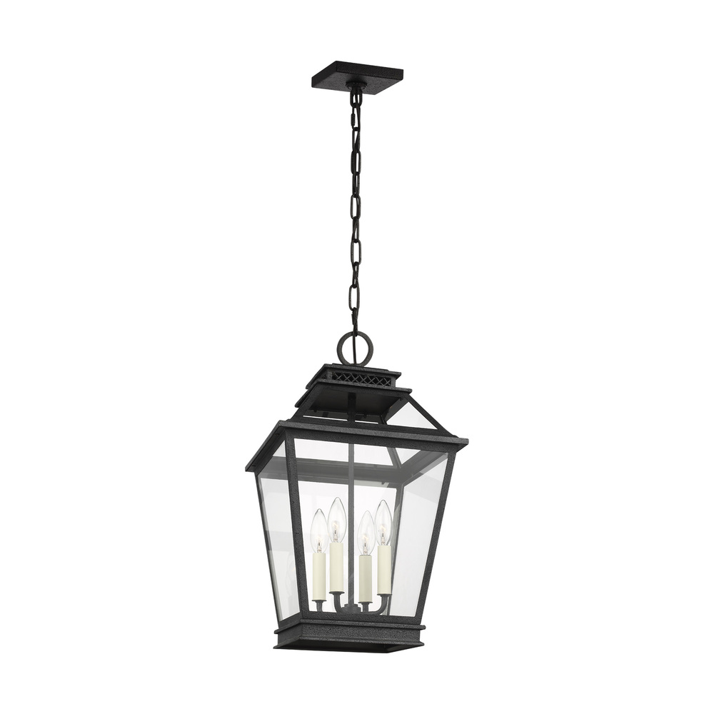 Falmouth by Chapman and Myers outdoor lighting design mimics a vintage gas lantern, with a classic, tapered box shape. The clean lines of the elegant frame have an uncluttered silhouette that showcases the beautiful panels of clear glass.