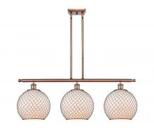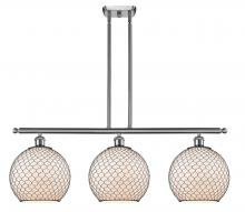 Farmhouse Chicken Wire - 3 Light - 37 inch - Matte Black - White Glass with Nickel Wire Shade - Stem hung - Island Light