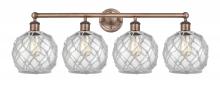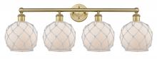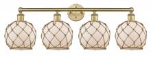 Farmhouse Rope - 4 Light - 35 inch - Antique Brass - White Glass with Brown Rope shade - Bath Vanity Light