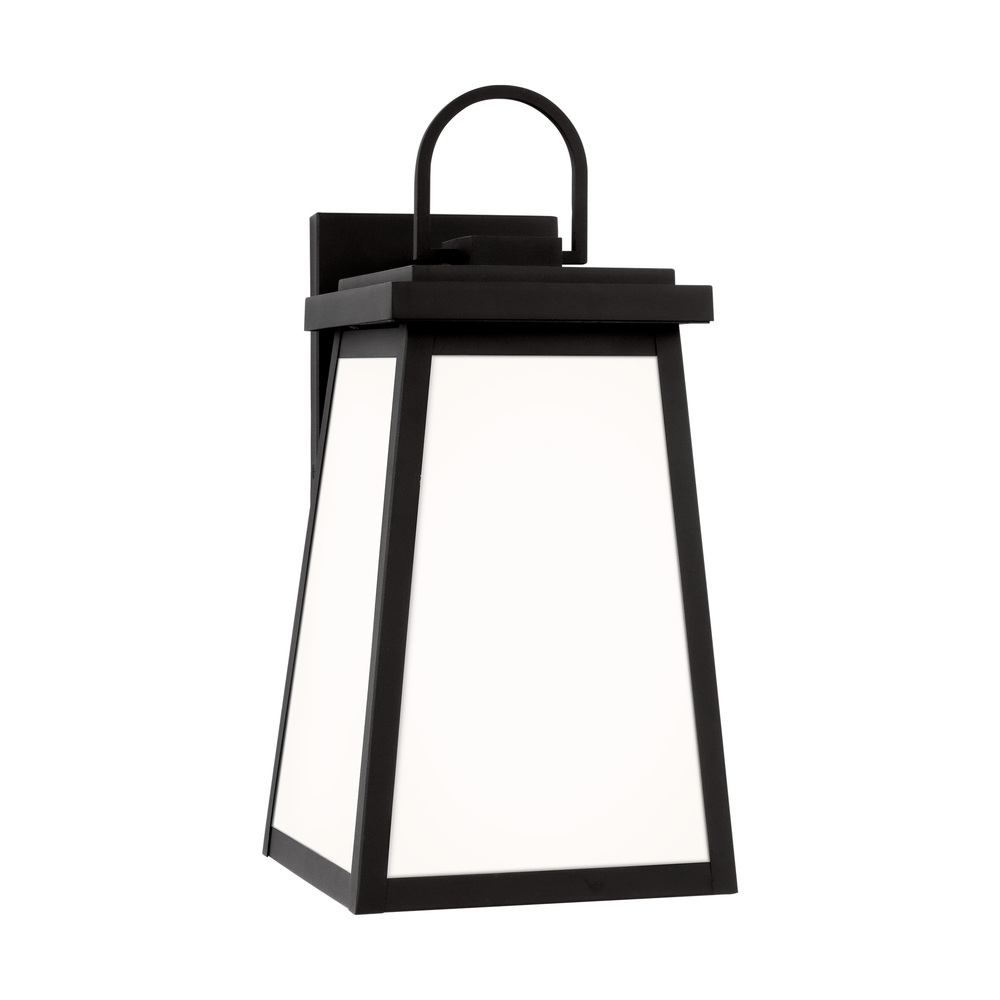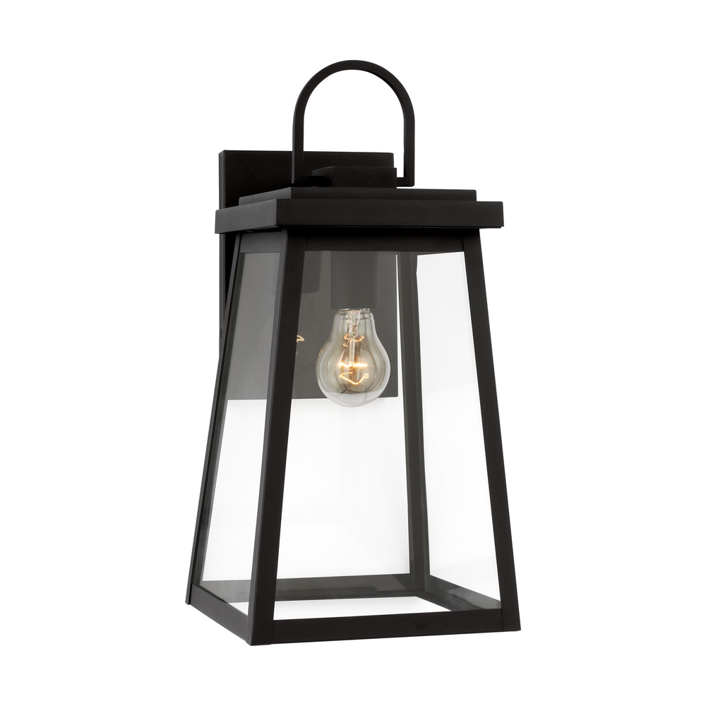 Founders modern 1-light LED outdoor exterior large wall lantern sconce in black finish with clear gl