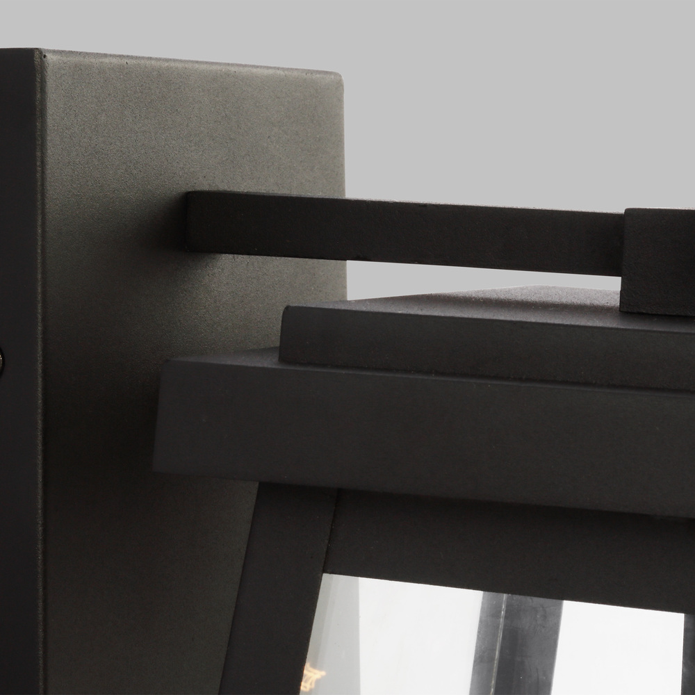 Founders modern 1-light LED outdoor exterior medium wall lantern sconce in black finish with clear g