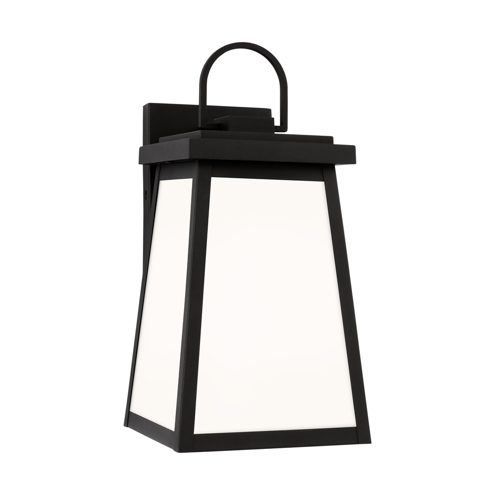 Founders modern 1-light LED outdoor exterior large wall lantern sconce in black finish with clear gl