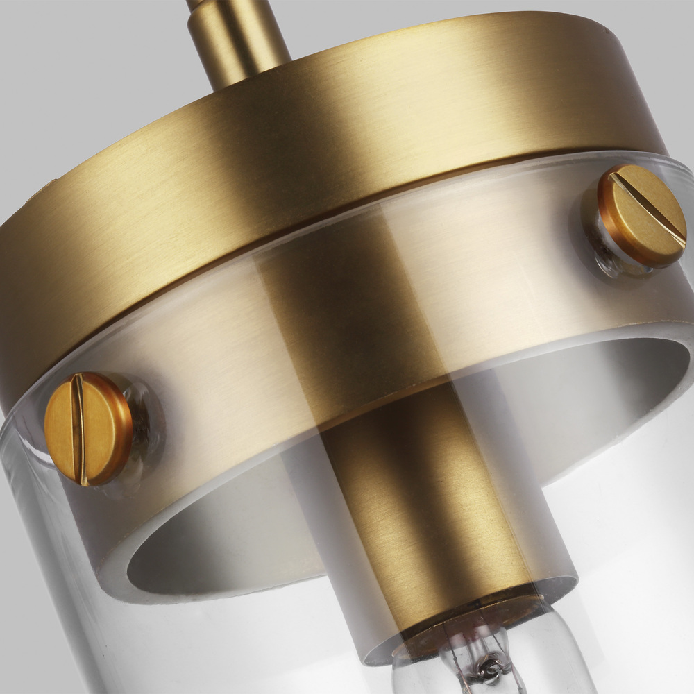 Garrett from Chapman & Myers for Visual Comfort Studio features cylindrical Clear Extruded Glass shades paired with industrial hardware. The two light flush mount fixture in burnished brass supplies ample lighting for your daily needs, while adding a layer of today's style to your home's décor. This striking blend of metal and glass, sophisticated in its simplicity, is both industrial and glamorous. It is sure to inspire a higher level of style wherever it is placed.