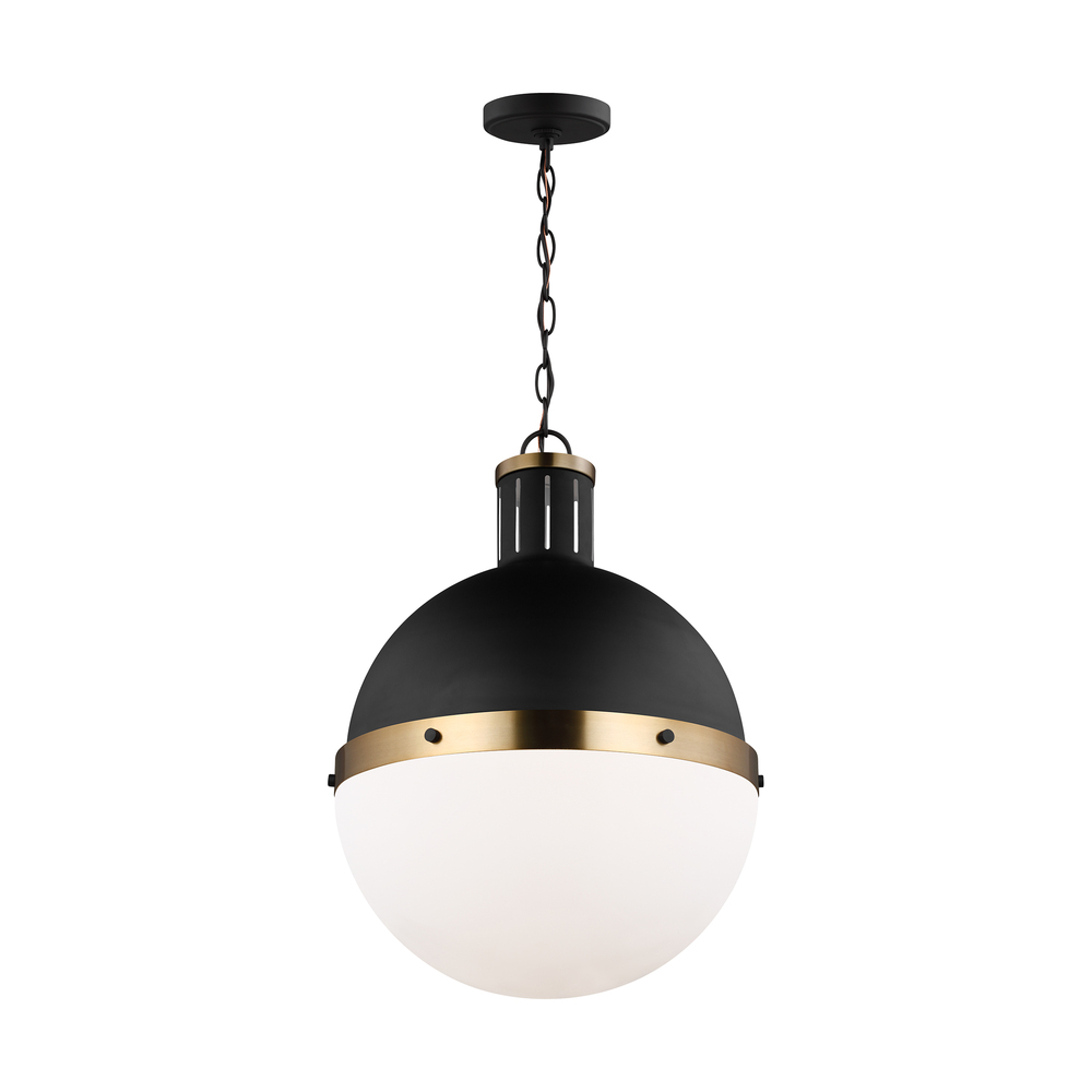 The Hanks medium modern pendant is offered in the Midnight Black/Satin Bronze, Antique Brushed Nickel, Satin Bronze, or Brushed Nickel finish. This globe style pendant is crafted with an antique finish and white glass shade, offering an approachable style with direct lighting. The multiple use of color and finishes exude mid-century modern style to help entice any updated space.