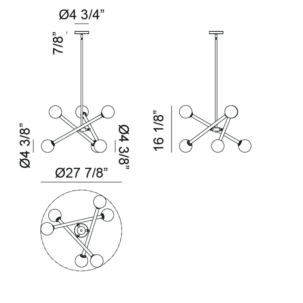 Matchstix chandelier will be a dramatic addition to any room. Modern movement in the crossing bar design will be a signature piece. Available in Aged Gold Brass or Black with either Clear or Opal glass.