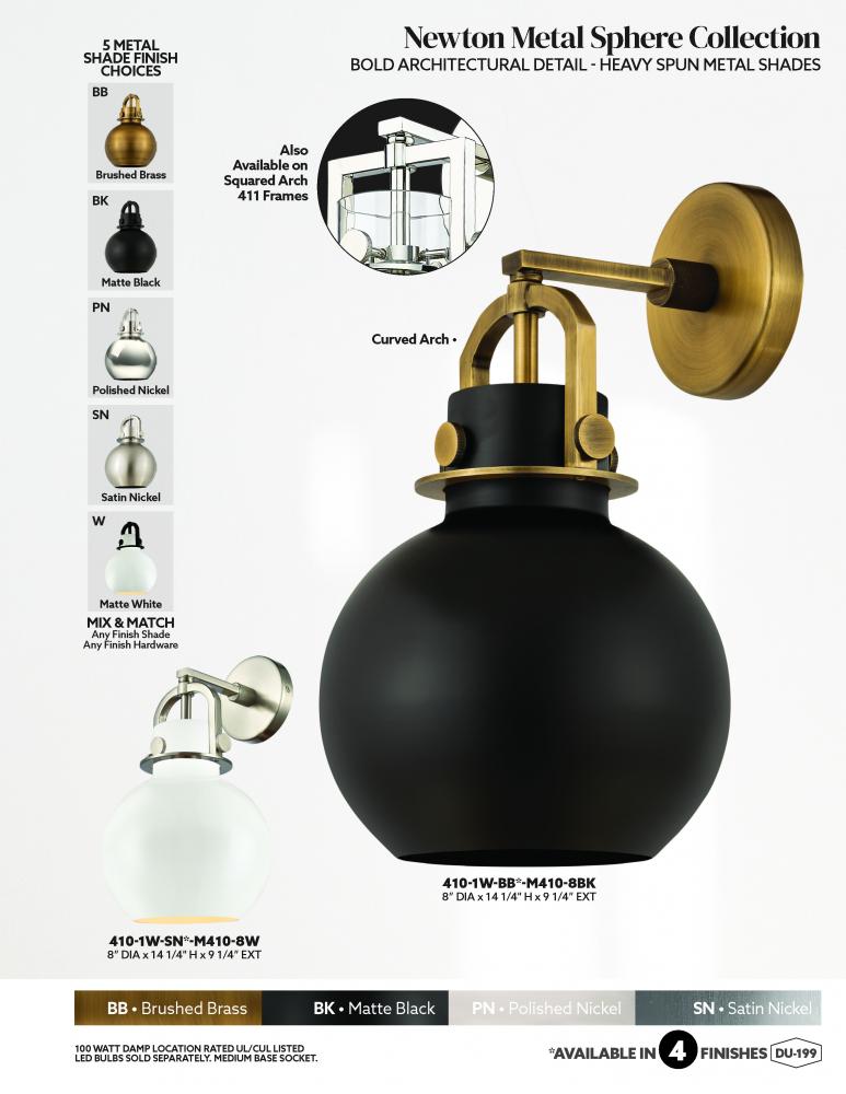 The Newton Sphere is a modern industrial collection that incorporates exceptional architectural details with a beautiful globe shaped shade. The iconic sphere shaped shade is available in either glass or heavy spun metal, making this collection perfect fo