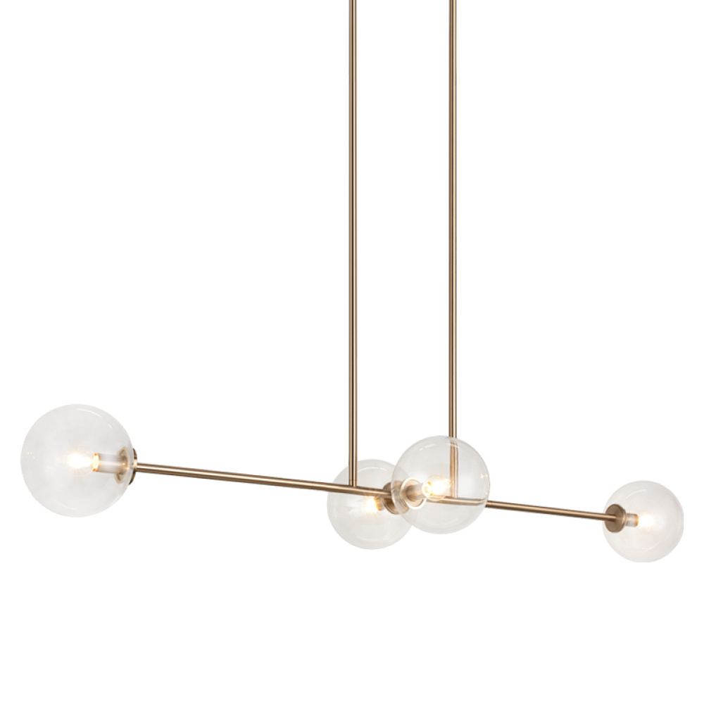 Novo is modern yet classic – available in the form of chandelier, wall sconce, and flush mount. The rods and base are either Aged Gold Brass or Black finish paired with a contrasting Opal Glass. The style is very versatile and will add beauty to multiple rooms.