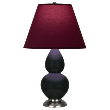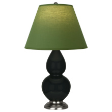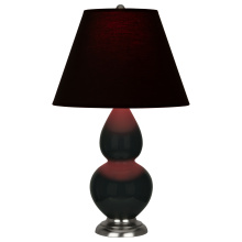 Obsidian Glazed Ceramic with Antique Silver Finished Accents Small Double Gourd Accent Lamp with Pearl Dupioni Fabric Shade - Our Double Gourd collection features a simple but gracefully curving silhouette. Available in a wide array of vibrant colors and several different base finishes.