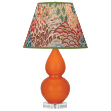 Pumpkin Glazed Ceramic with Lucite Base Small Double Gourd Accent Lamp with Bright Blue Fabric Shade with Gray Lining - Our Double Gourd collection features a simple but gracefully curving silhouette. Available in a wide array of vibrant colors and several different base finishes.