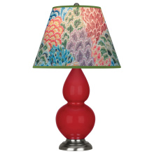 Ruby Red Glazed Ceramic with Antique Silver Finished Accents Small Double Gourd Accent Lamp with Pearl Dupioni Fabric Shade - Our Double Gourd collection features a simple but gracefully curving silhouette. Available in a wide array of vibrant colors and several different base finishes.