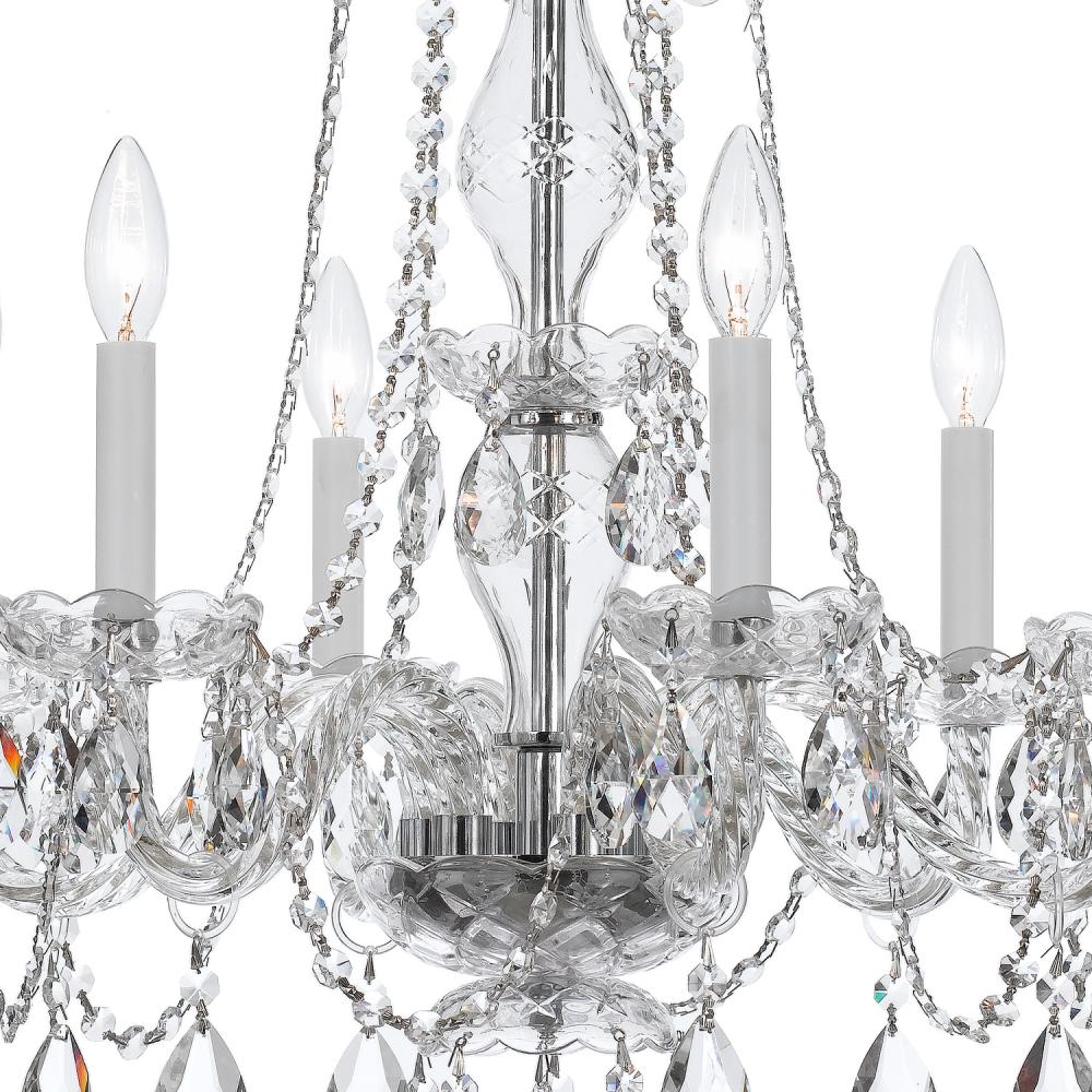Traditional Crystal 6 Light Clear Italian Crystal Polished Chrome Chandelier