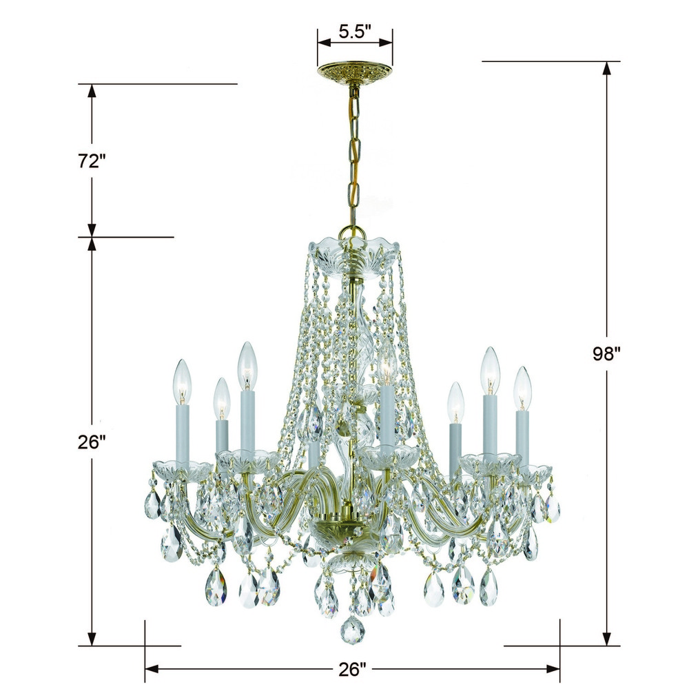 Traditional Crystal 8 Light Hand Cut Crystal Polished Brass Chandelier